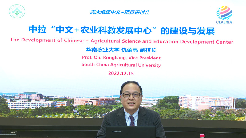 近日,以“构建国际中文教育高质量发展新格局”为主题的2022年国际中文教育大会暨交流周系列活动在北京启动,来自90多个国家和地区近1800名代表参加。12月15日,作为国际中文教育大会平行论坛之一的“美大地区‘中文+’项目发展论坛”顺利召开,论坛主要围绕“中文+”项目建设经验介绍、中外高校合作开展“中文+”项目的模式及分工探讨、“中文+”项目发展的困难、瓶颈和“中文+”项目发展需要的支撑政策四个议题展开。应教育部语言对外交流合作中心邀请,我校作为中拉高校代表之一参加了该论坛,副校长仇荣亮代表学校作主题报告。
