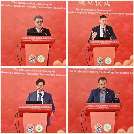 巴西驻广州总领事Alan Coelho de Sellos、乌拉圭驻广州总领事Facundo Fernández Guerra、阿根廷驻广州副领事Matías Zubiaur、巴西马托格罗索州大豆和玉米生产者协会主席Fernando Cadore分别致辞,对中拉大豆联盟的成立表示祝贺。他们表示,中拉大豆联盟的成立将对优化中拉大豆产业结构、丰富大豆产品市场发挥重要作用,提升中拉在大豆领域的科技水平和创新能力,促进农业科技领域的合作和发展。