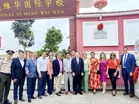 代表团还应邀访问了厄瓜多尔思邈维华国际学校,并举行“中-拉果蔬生产技术示范园”的挂牌仪式。中国驻厄瓜多尔瓜亚基尔总领事高振庭先生、厄瓜多尔洛斯·里奥斯省长代表、莫卡切等8个市的市长及当地政府部门、企业和师生代表参加仪式。
