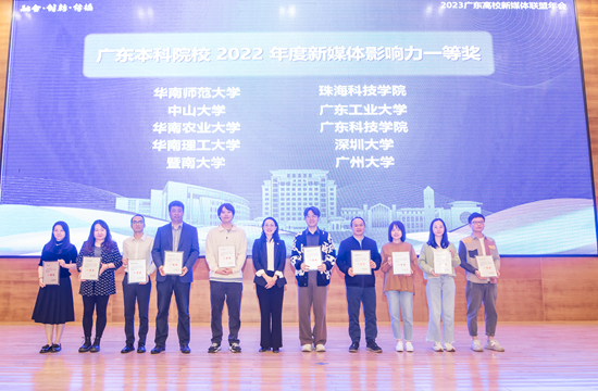 12月14日,2023年广东高校新媒体联盟年会在华南理工大学举办。会上举行了2022年广东高校新媒体影响力排行榜前30强颁奖典礼,华南农业大学官方微信公众号位列全省本科高校第三名,荣获一等奖。