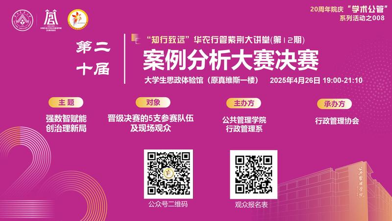 公共管理学院20周年院庆“学术公管”系列活动之008:“知行致远”华农行管紫荆大讲堂(第12期):第二十届案例分析大赛决赛