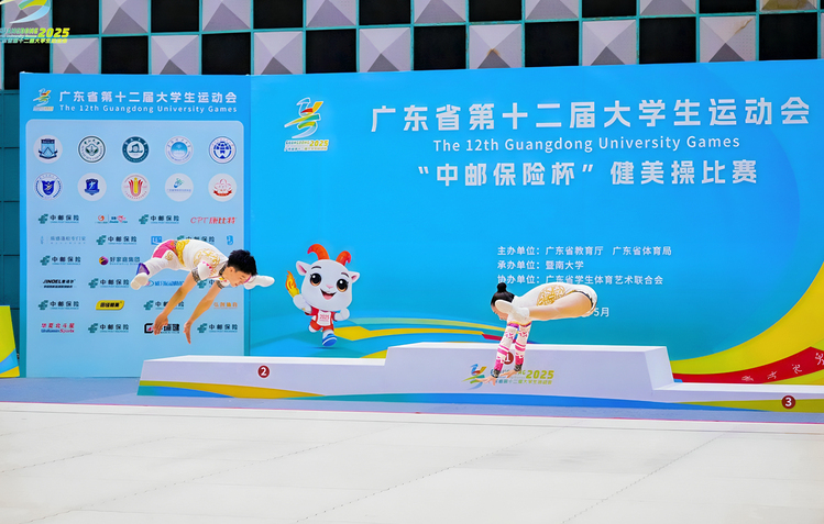 5月8—11日,广东省第十二届大学生运动会健美操项目总决赛于暨南大学邵逸夫体育馆举行。本次大赛汇聚了中山大学、华南理工大学等 55 所高校的 1000 多名运动员。我校学子凭借优异表现,斩获大学甲组男子单人操、混合双人操两项金牌,并荣获团体总分第五名,创造历届大运会最佳战绩。