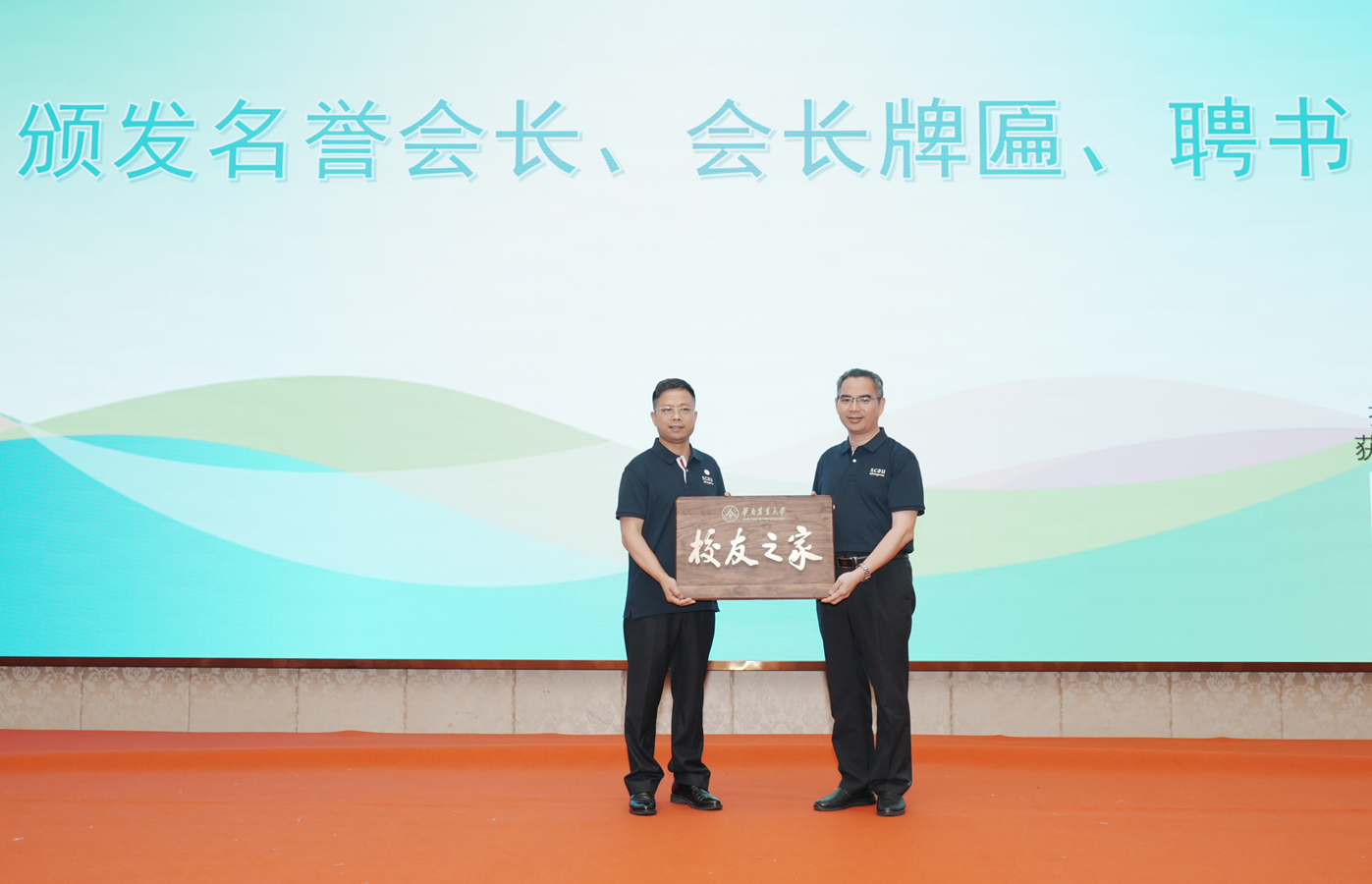 陈乐天为荣誉会长、会长颁发聘书,并为韶关校友分会颁发“华南农业大学校友之家”牌匾。