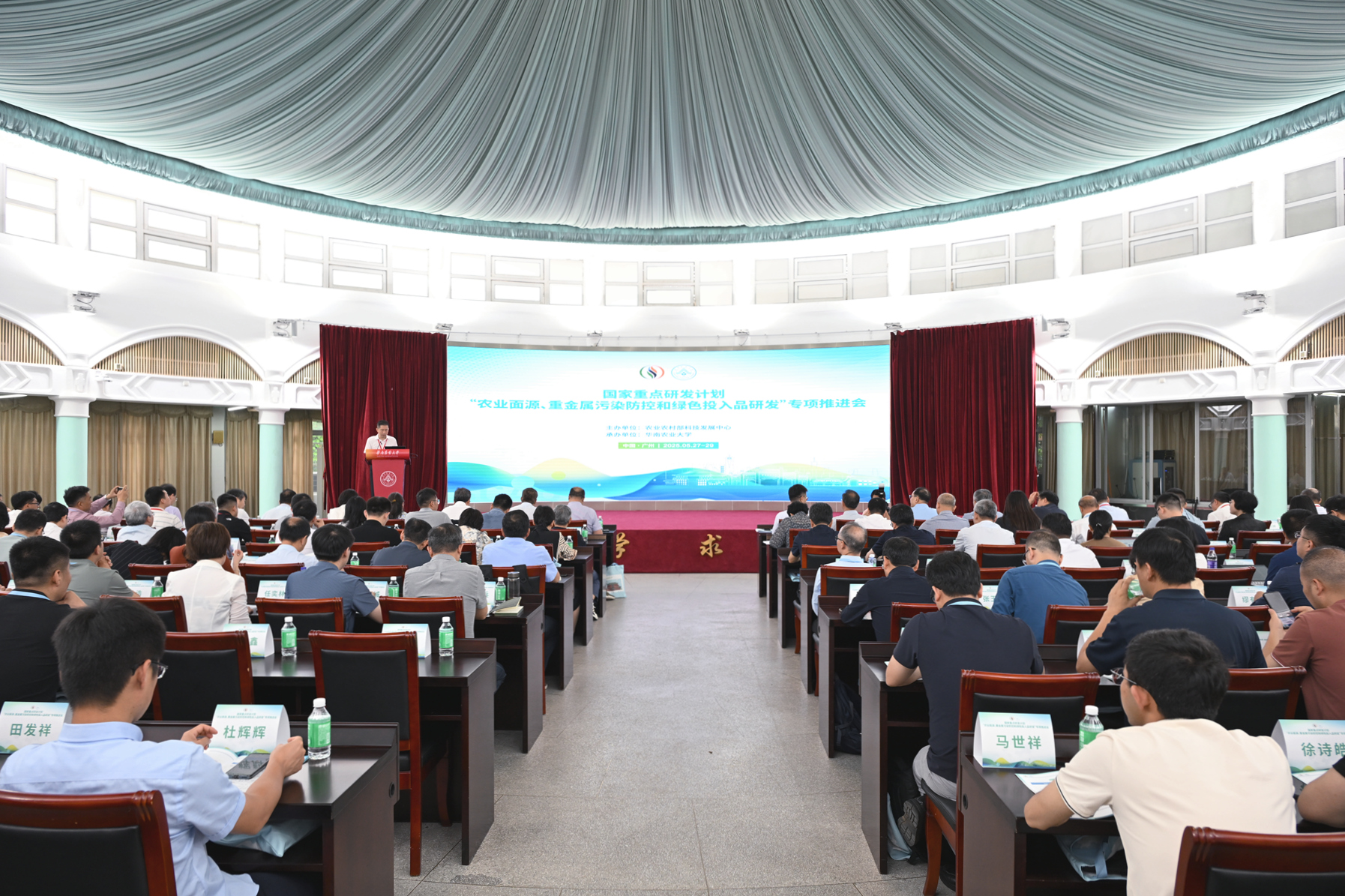 5月28日,国家重点研发计划“农业面源、重金属污染防控和绿色投入品研发”专项推进会在华南农业大学召开,对前期项目进展“把脉问诊”,为后续攻关凝聚智慧、校准方向。农业农村部种植业管理司二级巡视员宁鸣辉、农业农村部农业生态与资源保护总站首席专家朱平国、农业农村部科技发展中心总农艺师郑戈、省农业农村厅总畜牧兽医师陈楚楷、副校长仇荣亮出席会议并致辞。
