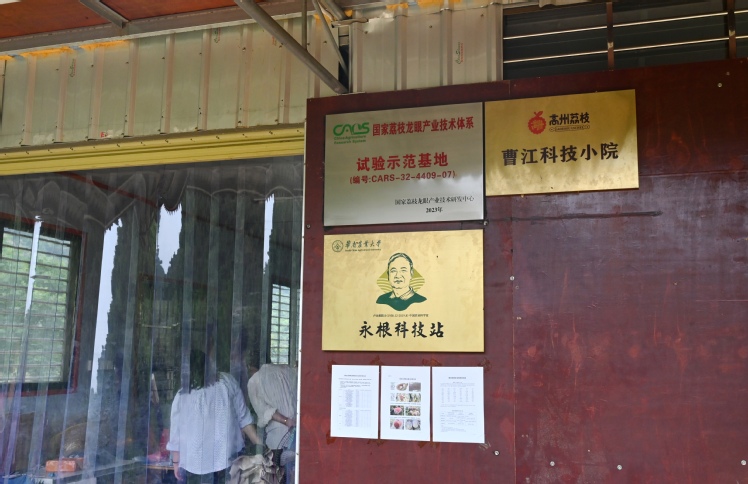 果园管理办公室门口挂着“华南农业大学永根科技站”的金色牌匾