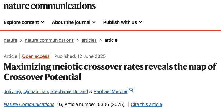 近日,德国马普植物育种研究所与华南农业大学联合研究团队在Nature Communications发表研究论文,题为Maximizing meiotic crossover rates reveals the map of Crossover Potential。研究通过遗传干预显著提升重组频率达12倍,并首次提出“重组潜力”(Crossover Potential, COP)概念,系统绘制了其全基因组分布图谱,为进一步理解重组频率和分布多态性、性别异质性及作物遗传育种策略提供了重要理论依据。