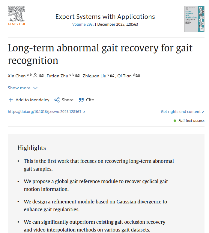 近日,我校电子工程学院(人工智能学院)陈欣副教授在人工智能顶级期刊Expert Systems with Applications(ESWA,中科院一区)发表题为“Long-term Abnormal Gait Recovery for Gait Recognition”的研究论文。