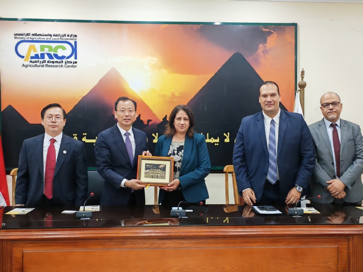 在埃及农业研究中心(Agriculture Research Center, ARC),代表团与埃及农业与土地开垦部部长助理兼官方发言人Dr. Mohamed EI Kersh、埃及农业研究中心副主席Dr. Shireen Kamal Assem及阿拉伯数字经济联盟(ADEA)副秘书长Dr. Ayman Ghonein等举行高级别会谈,并参观了埃及农业研究中心下属的土壤、水和环境研究所、区域食品与饲料研究中心、农业遗传工程研究所等机构及其相关实验室。我校与上述三方围绕共建“中阿数字农业与绿色低碳技术联合实验室”“中阿跨境农业电商示范平台”“中阿农业科技教育创新联盟”“中埃农业大数据平台”,开展旱区农业、数字土壤、智慧灌溉、食品安全、农业智库研究与决策支持等领域的科技创新联合研究,以及加强“中文+数字经济”复合型人才培养等方面达成初步共识。
