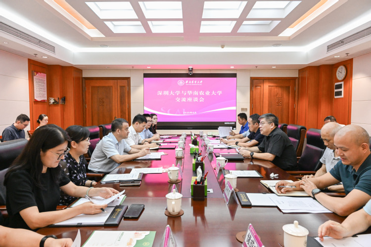 会上,薛红卫对周辉一行的来访表示欢迎,并介绍了我校教育事业的发展情况。他表示,华农与深大交流广泛、友谊深厚,希望双方以此次交流为契机,持续深化两校间的联系与合作。周辉对我校的热情接待表示感谢,并介绍了深圳大学的基本情况。他提到,双方在科学研究、平台建设等方面有着良好的合作基础和广阔合作前景,希望双方进一步加强交流,合作共赢。