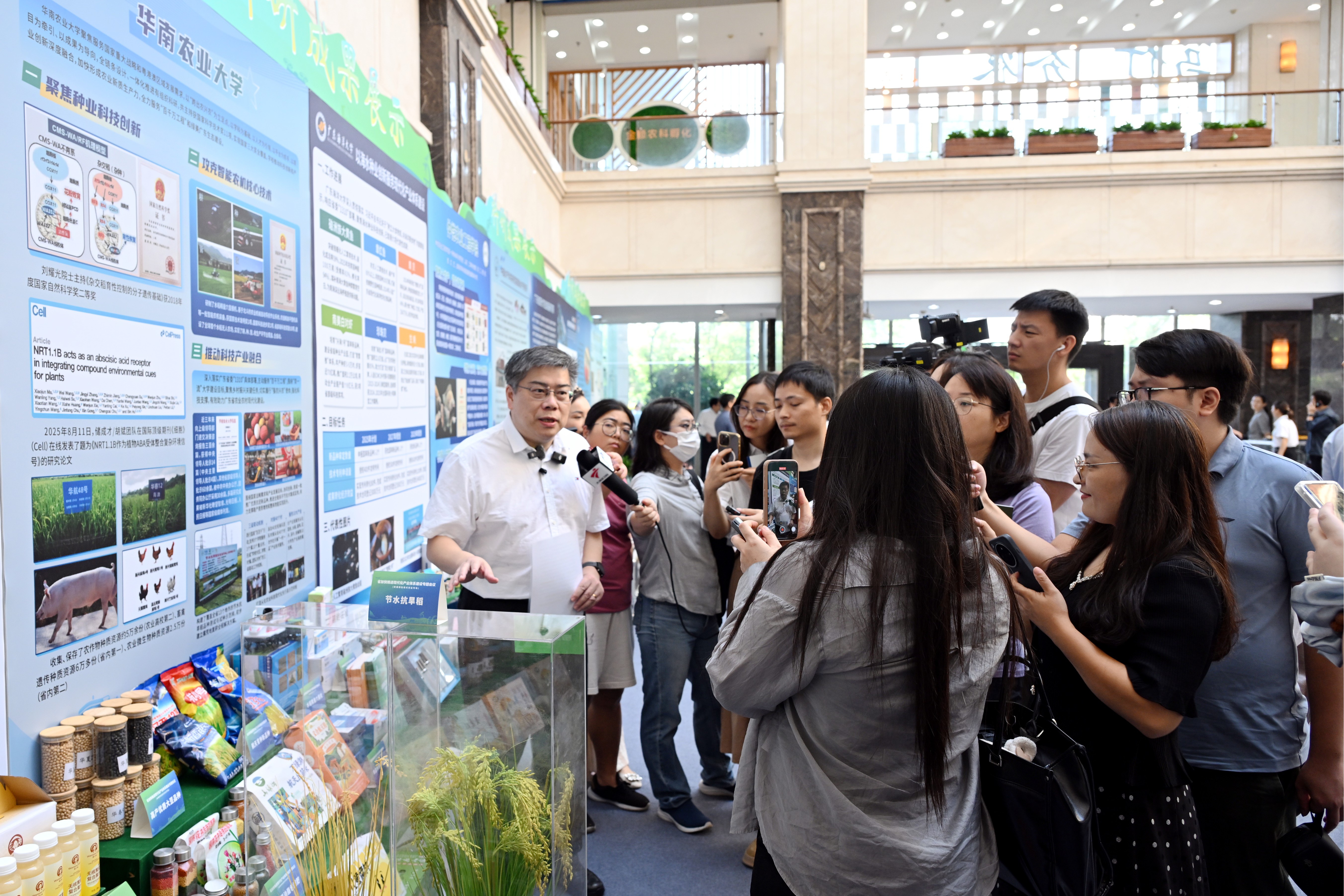据悉,本次会场设置了科研成果展览区,学校展示了生物育种、智能装备等领域的科研成果,体现了华农服务于区域现代农业发展的责任与担当。华农将继续聚焦“粤强种芯”“粤强农装”等重大战略,进一步深化和龙头企业深入合作,实现从人才培养、人才培训、科技创新、平台创制,乃至未来大型平台建设,最终实现产业瓶颈关键技术以及限制性瓶颈技术的联合破解,助力从技术研究到产业研究的全方位提升,为广东省现代化产业体系建设提供坚实科技和人才支撑。