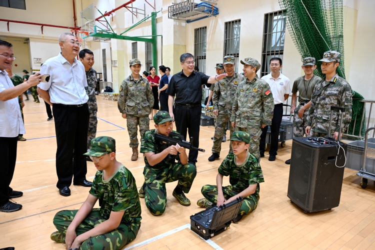 在启林北训练馆,薛红卫观摩了2025级新生军训射击训练,了解激光感应设备和智能分析系统在精度考核中的使用情况,鼓励同学们珍惜机会、刻苦训练,在军训中磨炼意志、增强体质、培养团队精神,并提醒相关部门严格落实安全管理制度,保证军训平稳有序进行。