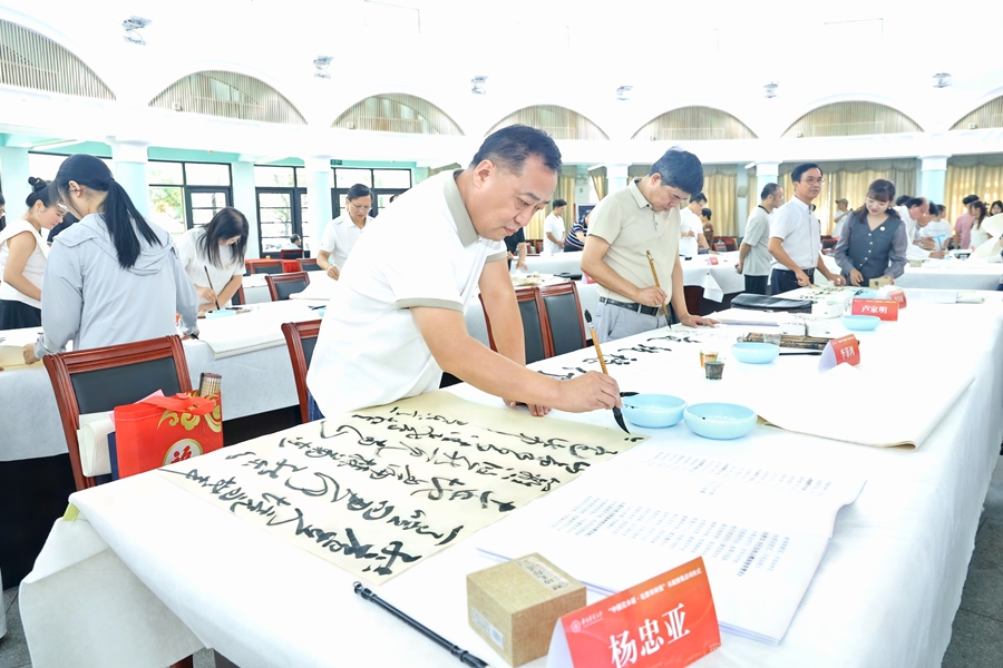 9月10日,华南农业大学红满堂内墨香馥郁、茶韵清雅,“中国花木语·笔墨寄师情”书画雅集活动正在举行。30余位书画名家同席执笔、即兴创作,落笔有神,气韵生动,饱含祝福。一批名家作品现场赠予学校,以书画敬献师者,庆祝第41个教师节。