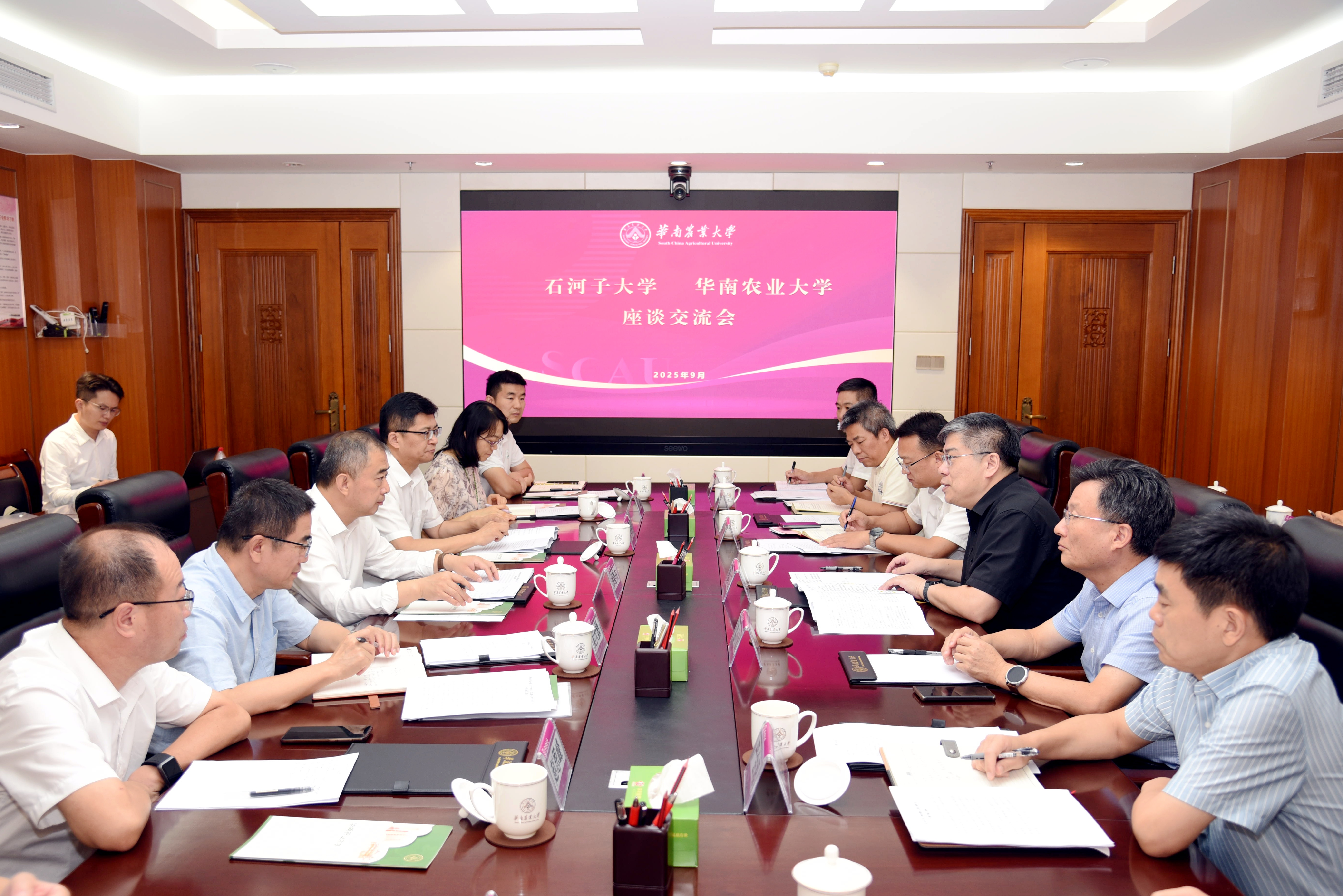 9月12日,石河子大学党委书记徐善东、副校长吴向未一行来校调研交流对口支援合作事宜。校长薛红卫、副校长温小波接待来宾并座谈。