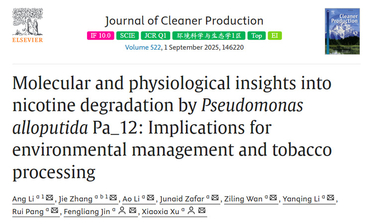 近日,华南农业大学植物保护学院/绿色农药全国重点实验室金丰良/许小霞团队在Journal of Cleaner Production(中科院一区Top,影响因子10.7)发表了关于异恶臭假单胞菌Pa_12降解尼古丁机制与应用的研究论文。该研究通过多组学分析明确了Pa_12的系统分类与代谢特性,发现在pH 7、30°C条件下该菌株具有高效尼古丁降解能力。实验表明,Pa_12可在烟草叶片成功定殖,促进植物生长并显著降低尼古丁含量。LC-MS/MS分析揭示其通过一条新型代谢途径将尼古丁转化为2,5-二羟基吡啶,避免了传统途径中有害副产物的生成。该研究为烟草废弃物的绿色处理与烤烟品质提升提供了新思路,在环境修复与可持续农业领域具有重要应用潜力。