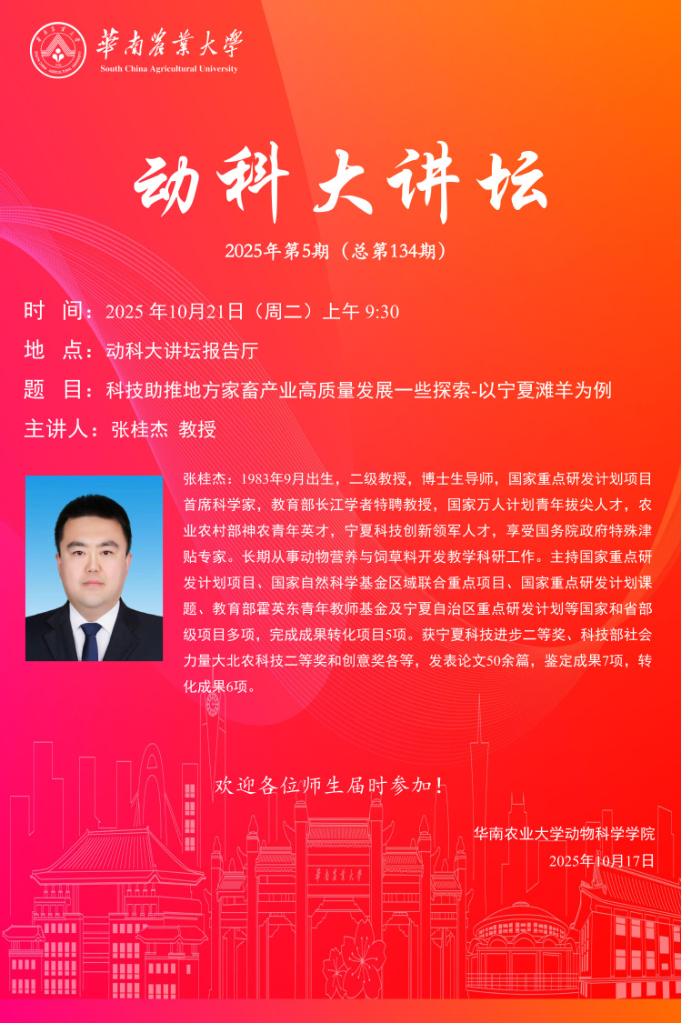 动科大讲坛(第134期):科技助推地方家畜产业高质量发展一些探索-以宁夏滩羊为例