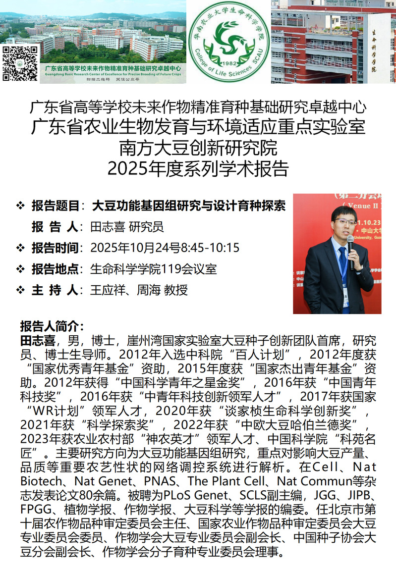 生命科学学院特邀报告——大豆功能基因组研究与设计育种探索