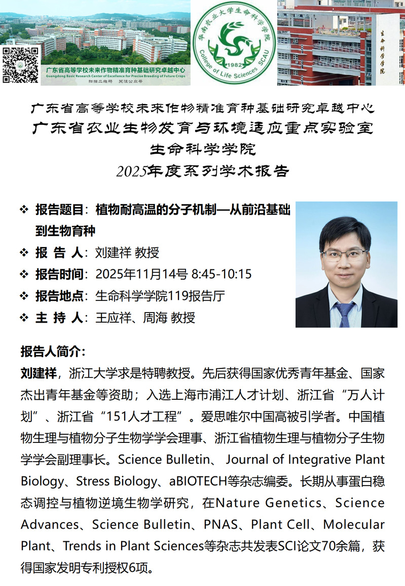 生命科学学院特邀报告——植物耐高温的分子机制—从前沿基础到生物育种