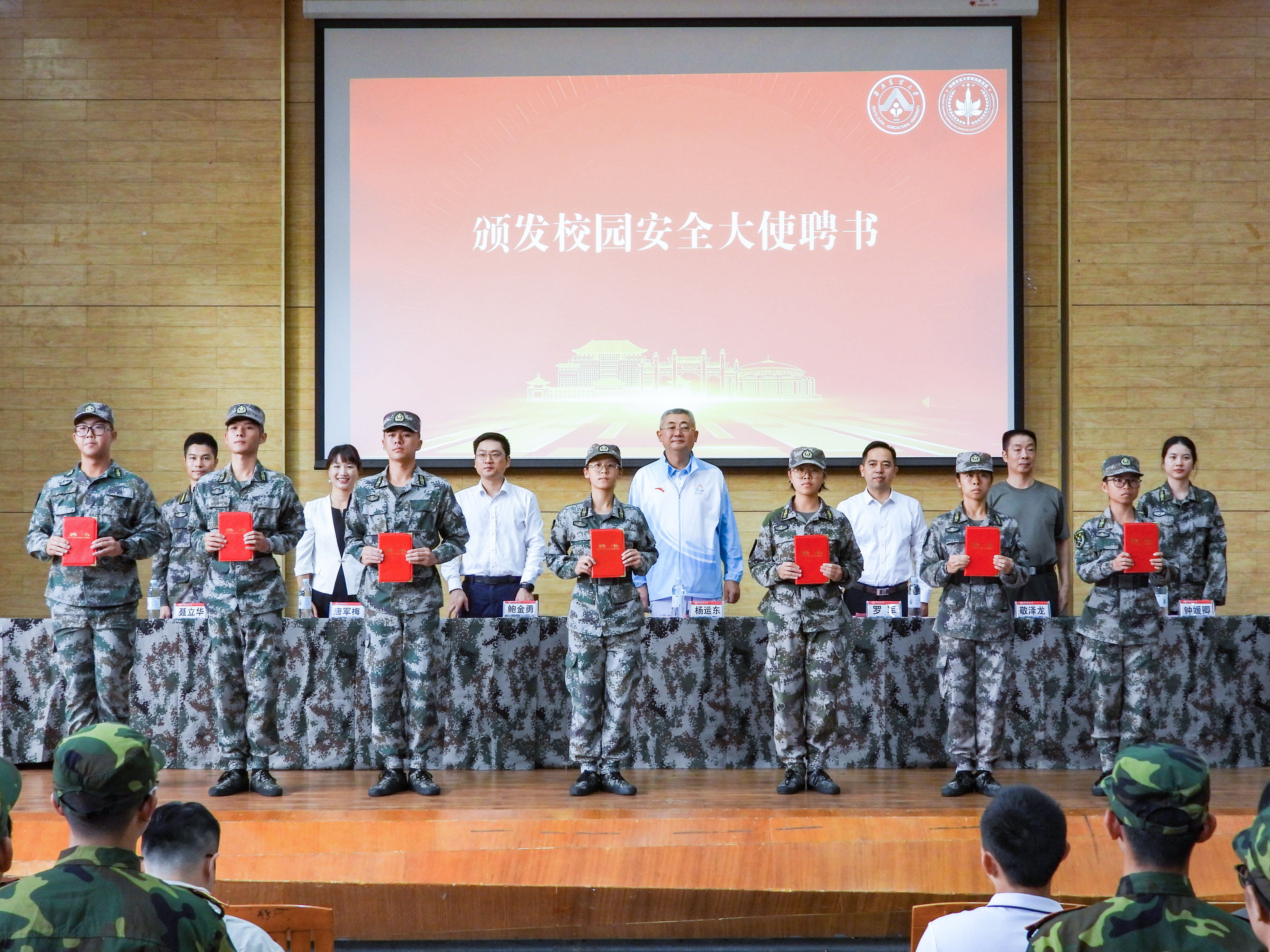 会议宣读了军训教官团第十期建制编成,任命了校园安全大使,为第十期骨干等颁发聘书,并进行骨干代表发言以及新学员加入教官团宣誓仪式。