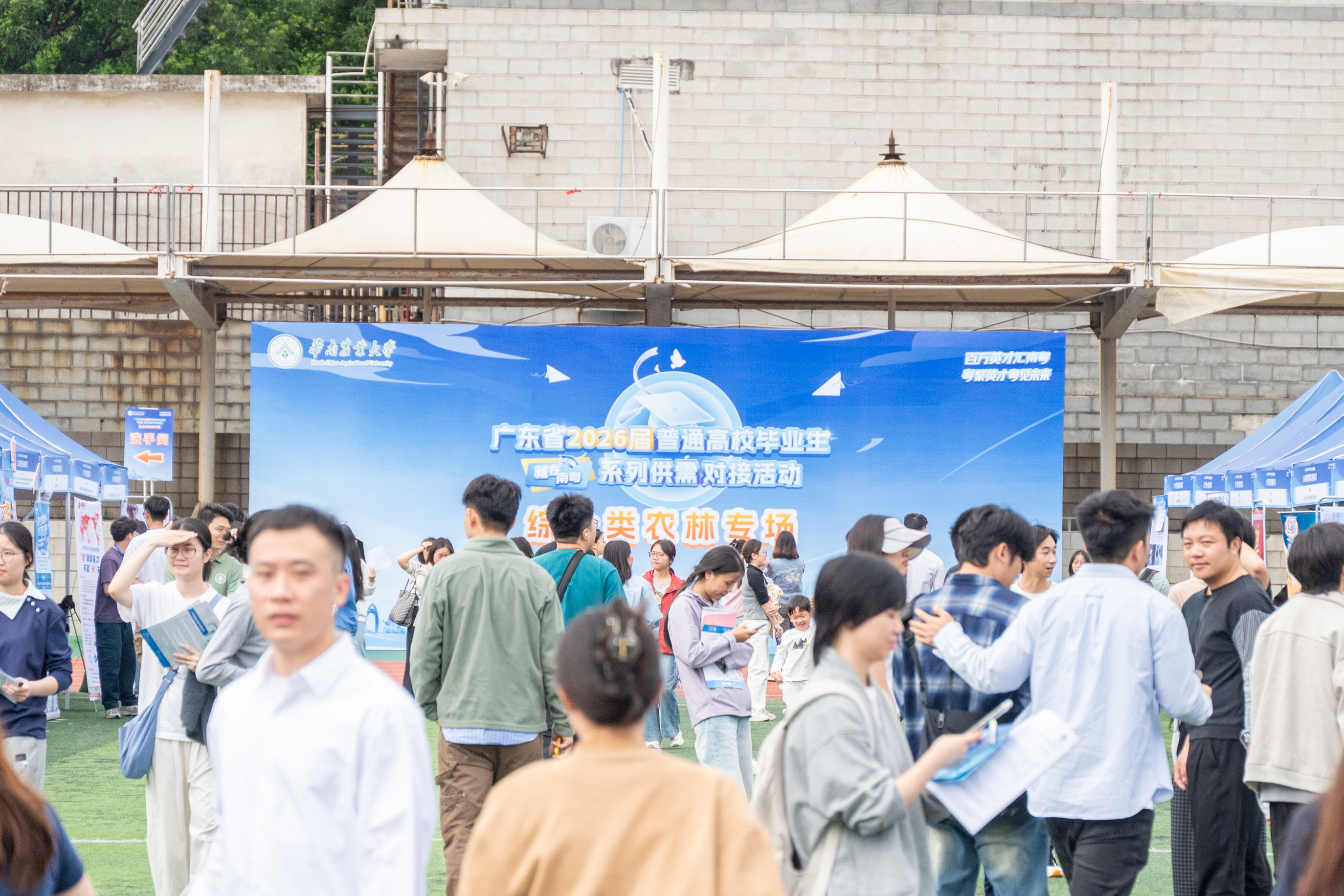11月15日,由广东省教育厅主办,华南农业大学承办的广东省2026届普通高校毕业生系列供需对接活动综合类农林专场在华山运动场举办。本次活动以线上线下相结合的方式进行,共有358家用人单位参会,提供1.4万余个就业岗位。华农党委副书记丁红星到场指导工作。