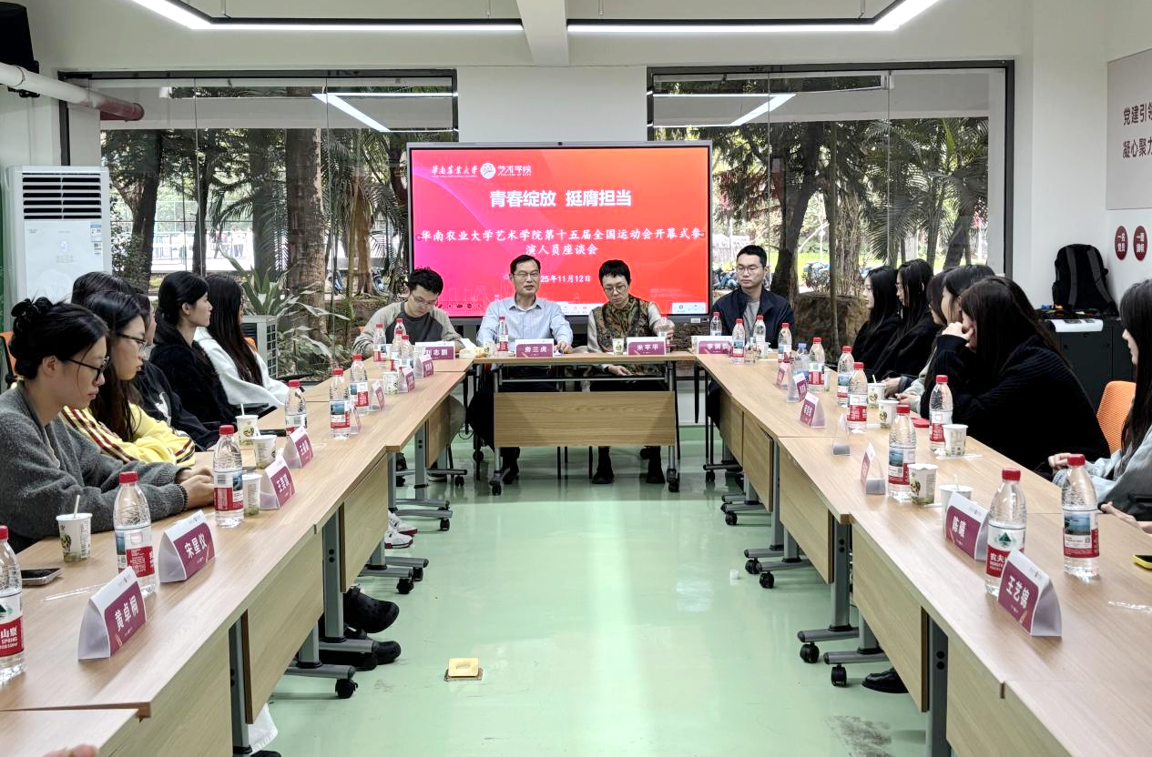 近日,华南农业大学艺术学院在启林北一站式社区服务中心党团活动室召开第十五届全运会参演学生座谈会,28名参与第十五届全运会开幕式引导员工作的学子受邀到场,分享幕后训练的汗水与逐光而行的成长感悟。