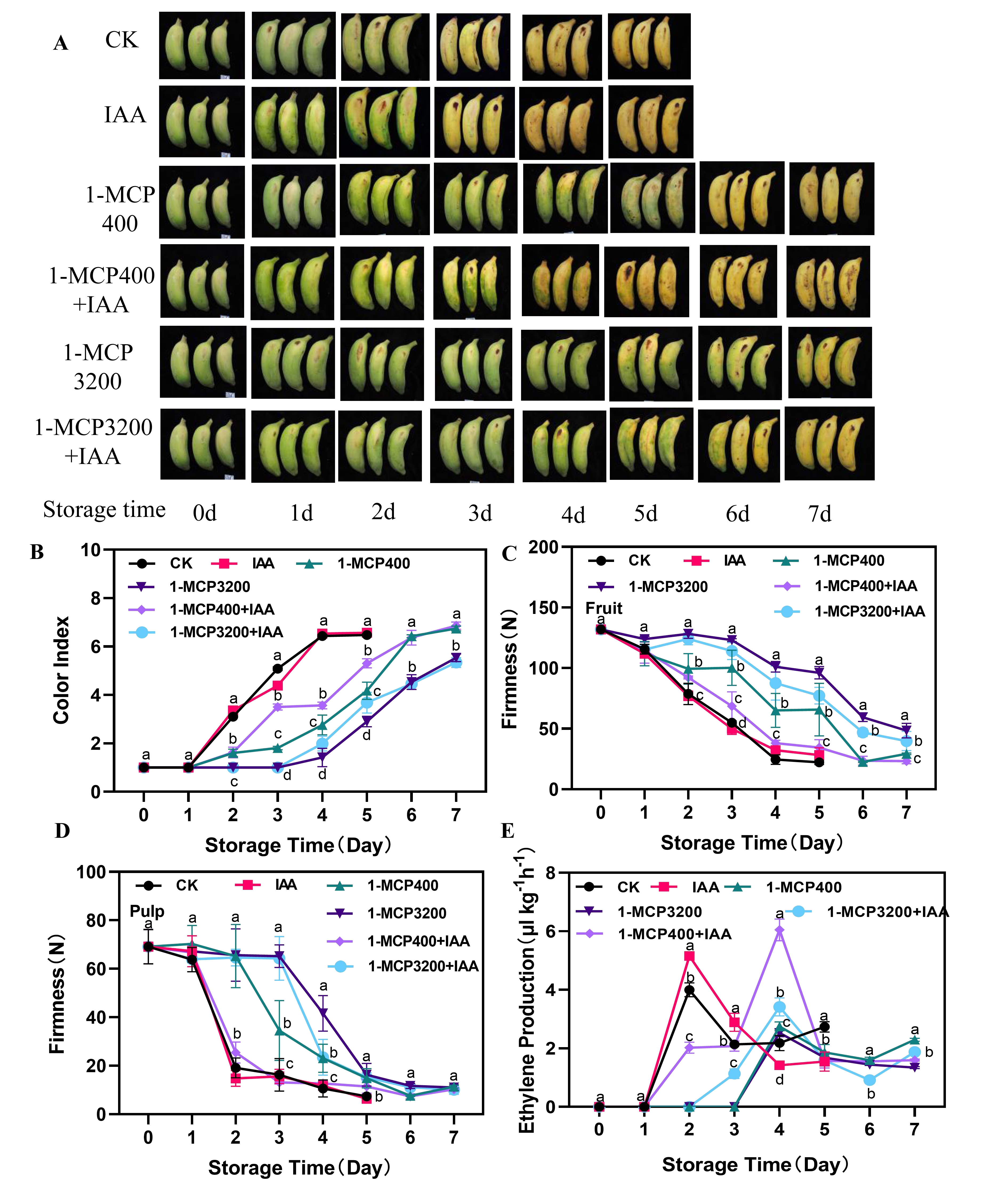图2 外源IAA处理促进果实成熟及减轻1-MCP对果实成熟的抑制