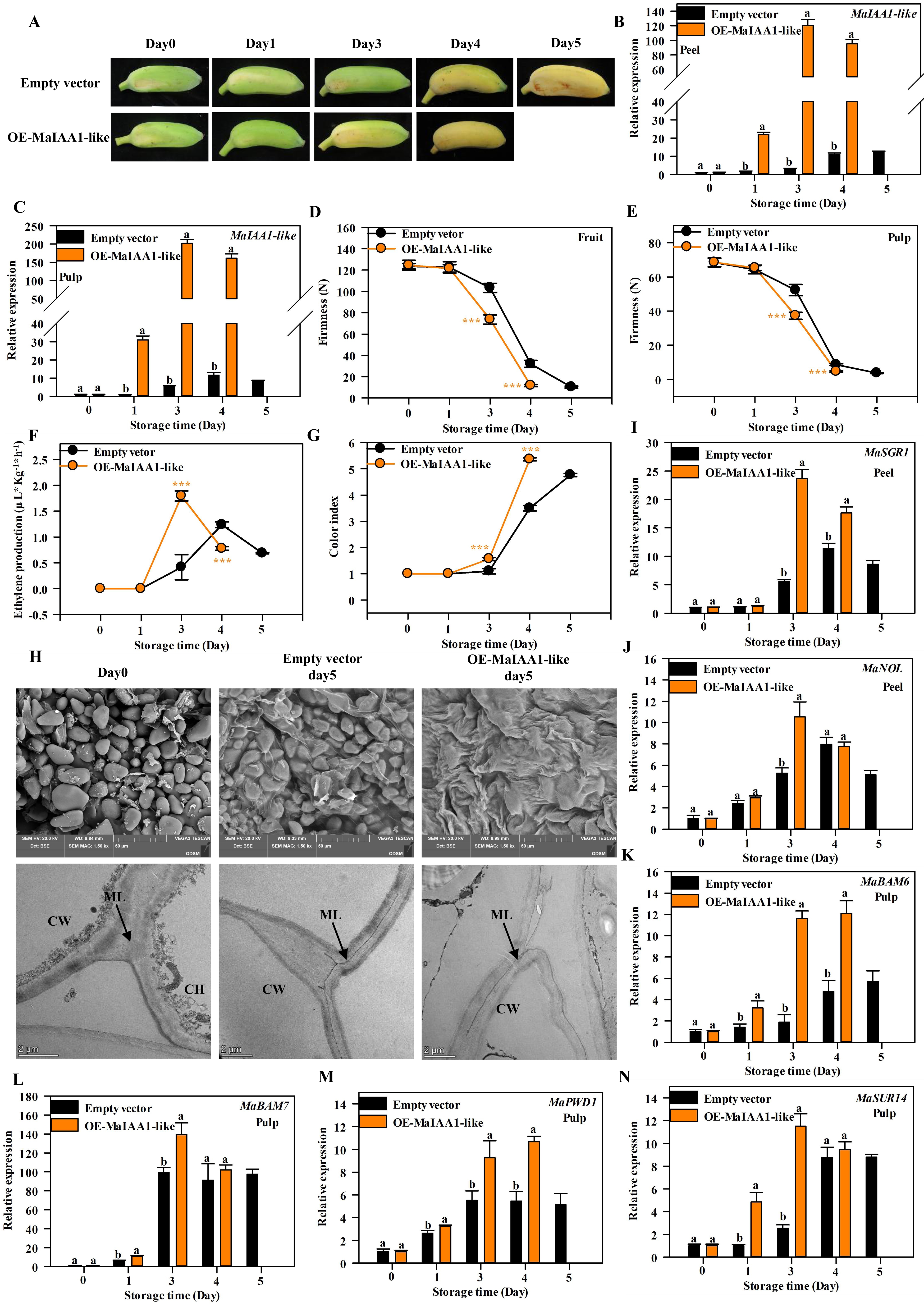 图1 MaIAA1-like超表达影响粉蕉果实成熟