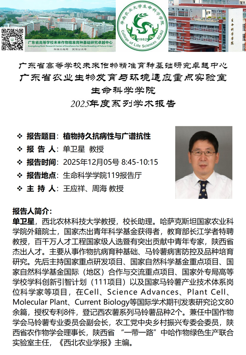 生命科学学院特邀报告——植物持久抗病性与广谱抗性
