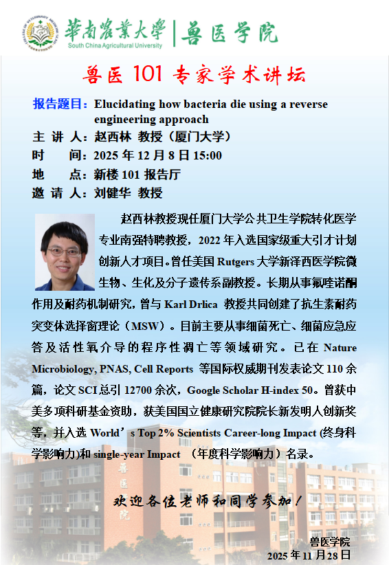 兽医101著名专家学术讲坛:Elucidating how bacteria die using a rever'seengineering approach