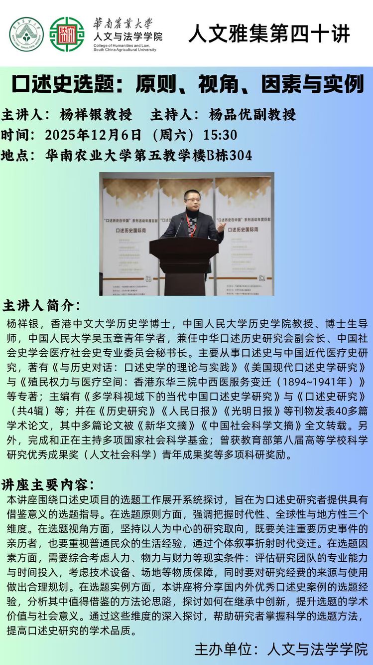 人文雅集第四十讲|口述史选题:原则、视角、因素与实例