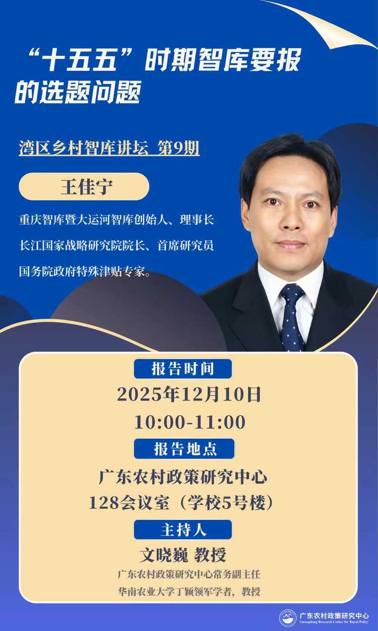 【预告】湾区乡村智库讲坛(第九期):“十五五”时期智库要报的选题问题