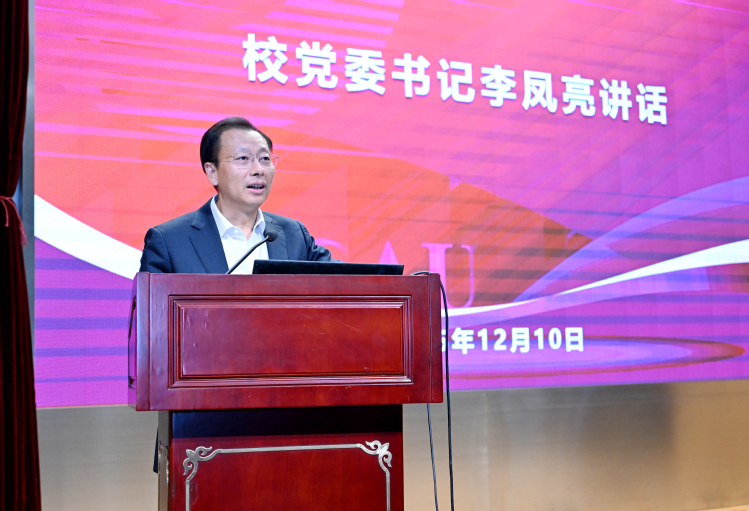 如何让华农的旗帜在“百千万工程”的战场上高高飘扬,交出无愧于时代的优异答卷?李凤亮以“顶天立地的华农坐标在哪里”“服务大局的华农成效如何显”“协同高效的华农合力如何聚”三个问题为纲,系统阐述了学校未来三年乡村振兴与社会服务工作的重点内容和实施路径。他指出,作为华南地区唯一的农林类“双一流”建设高校,华农正朝着农业特色世界一流大学的目标勇毅前行,必须胸怀“国之大者”,突出农业科技工作应用导向,促进农业科技创新供需对接匹配,以深厚的专业积淀和前沿的科技实力,为广东提供“量体裁衣”式的解决方案,同时用足用好多学科协调发展的独特优势,主动识变应变求变,把特色优势转化为服务效能;深化推进组织化服务、阵地化实施、领域化推进、品牌化建设四大专项行动,推动服务模式从“分散作战” 向“集团作战”转变、服务内容从“单项输出”向“系统赋能”转变、服务方式从“被动响应”向“主动对接”转变,使工作更显华农辨识度、更具品牌影响力,形成一批看得见、叫得响、立得住、传得开的亮点成绩;将服务“百千万工程”与学校立德树人机制综合改革、“学院-学科-学位点-专业”一体化建设等中心工作协同推动,构建“学校-单位-团队”三级联动责任体系,细化“任务清单、资源清单、成效清单”三项清单推进机制,强化“校内协同、校地协同、校际协同”三个协同联动效应,推动学校服务“百千万工程”向深向实。