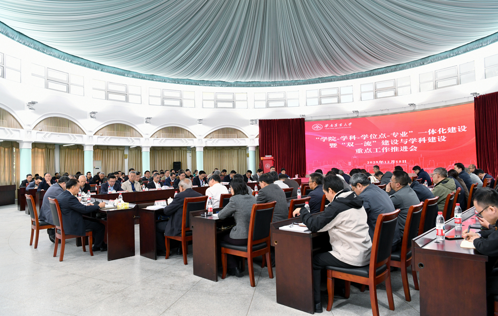 12月15日,学校在红满堂召开“学院-学科-学位点-专业”一体化建设暨“双一流”建设和学科建设重点工作推进会,聚焦构建“农科更强、工科更精、文科更特、交叉更显”的学科发展新格局,对一体化建设与“双一流”建设总结迎评工作进行再动员、再部署。校党委书记李凤亮,校长薛红卫,校党委副书记丁红星、陈磊,副校长温小波、杨运东、钟强、陈乐天,中国科学院院士刘耀光、中国工程院院士罗锡文出席会议。