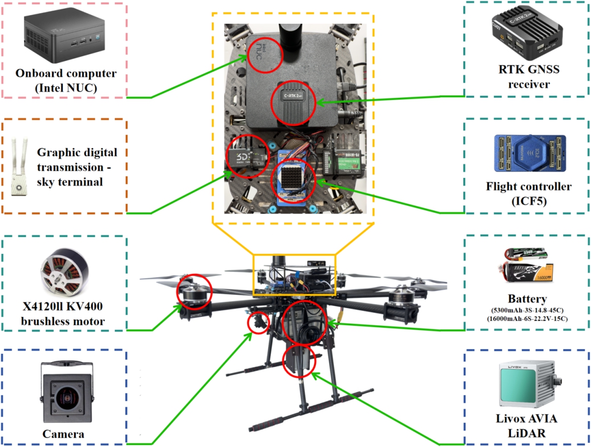 近日,工程学院硕士研究生李斯培以第一作者身份在在国际知名期刊Computers and Electronics in Agriculture(中科院一区Top期刊,影响因子8.9)发表题为“Research on Real Time Mapping and Transfer Learning Based 3D Semantic Segmentation of Unstructured Orchards”的研究论文。论文依托团队自主研发的智能感知无人飞行平台,该平台集成了激光雷达(LiDAR)、高精度全球导航卫星系统(GNSS)、惯性测量单元(IMU)等多源传感器,提出并实现了名为LIG-LIO的紧耦合激光雷达SLAM(Simultaneous Localization and Mapping),构建了面向非结构化果园环境的实时定位建图和语义地图生成系统,为丘陵山地非结构化果园三维点云地图的重建和语义映射提供了一种高效、准确的解决方案。