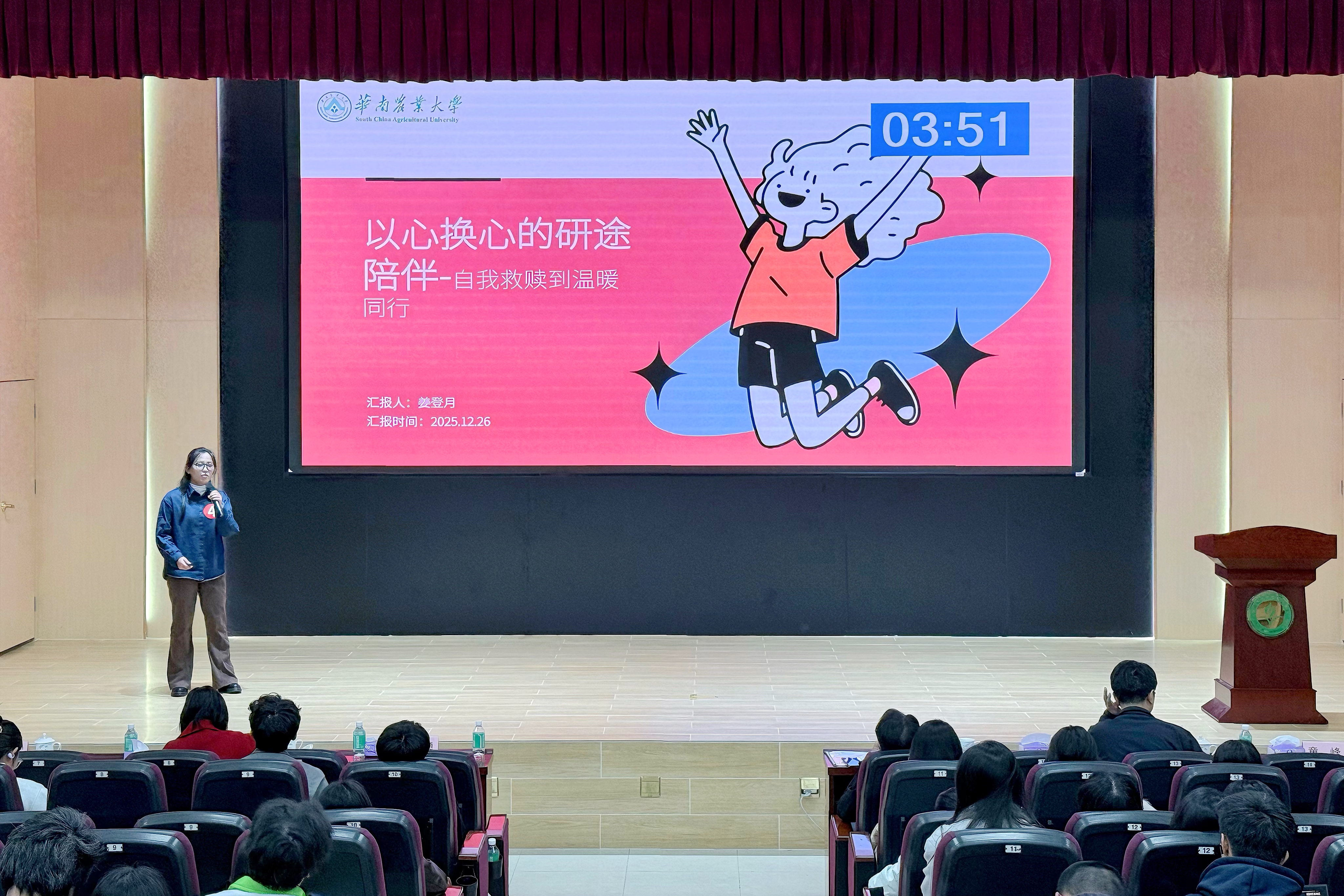 为扎实推进全国健康学校建设,织密织牢校园心理健康朋辈支持网络,充分发挥心理委员(联络员)在心理育人工作中的桥梁纽带作用,12月26日,华南农业大学首届“十佳心理委员(联络员)”评选决赛举行。经过前期激烈角逐,共25名选手晋级决赛。决赛邀请中山大学、南方医科大学、广东技术师范大学等相关专家担任评委。