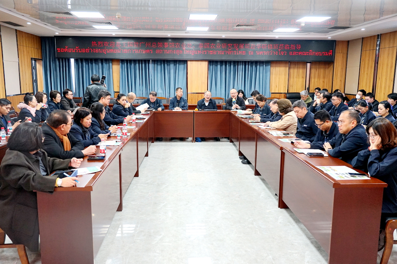1月12日,由泰国农业研究发展局组织的高级农业研究管理人员研修班一行到访华南农业大学,在水稻生产机械化博览馆进行参观学习。中国工程院院士、华南农业大学教授罗锡文在农业工程楼接待了来宾并座谈。