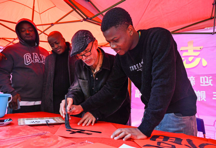 华农2025级西班牙籍留学生莲娜第一次参加学校的送春联活动,在学校老师的指导下还亲身体验了一把书法,“对我来说这是一次新奇的体验,希望以后有更多机会感受中国传统文化。”