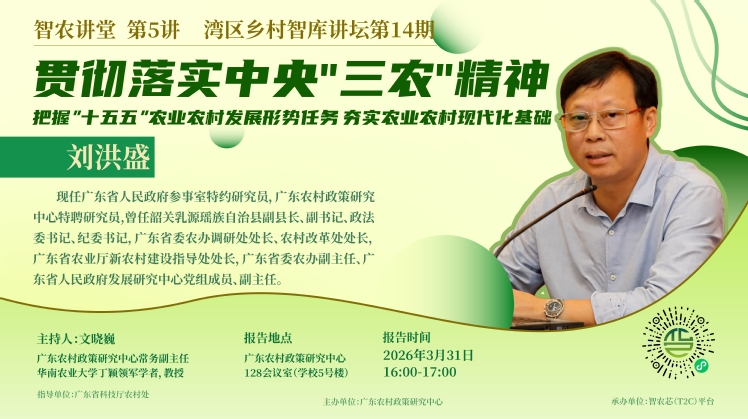 【会议预告】智农讲堂第5讲 湾区乡村智库讲坛第14期:贯彻落实中央"三农"精神