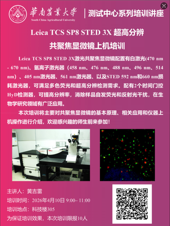 测试中心系列培训讲座(2026年第3期):Leica TCS SP8 STED 3X超高分辨共聚焦显微镜上机培训