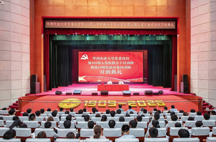 4月10日晚,华南农业大学党委党校第101期入党积极分子培训班暨第19期发展对象培训班开班典礼在丁颖礼堂举行,共有1631名入党积极分子、1141名发展对象参加了此次培训。