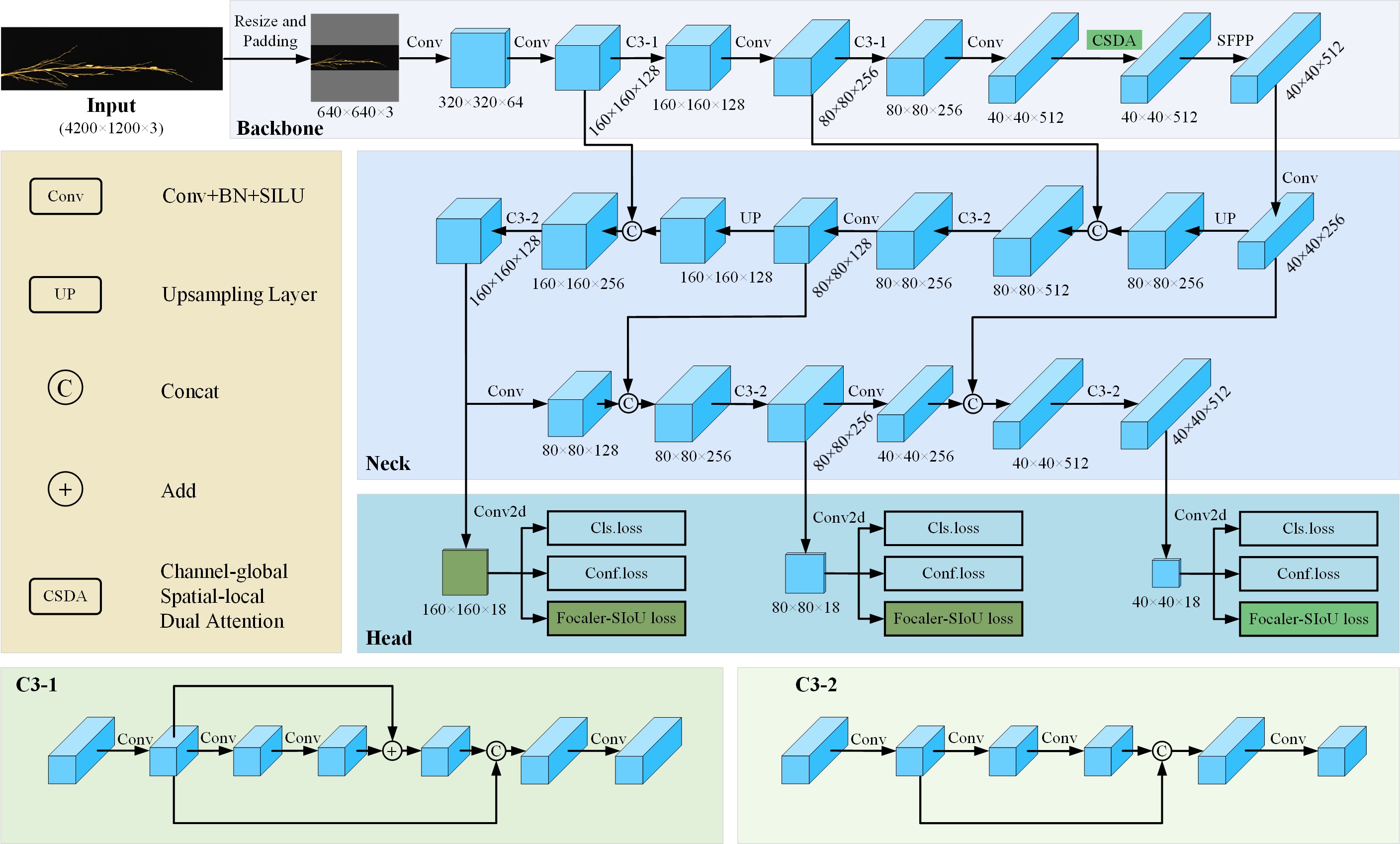 结实率是水稻考种中的重要指标,而脱粒后稻穗残留空粒的精准检测是实现其智能测定的关键环节。由于残留空粒目标尺寸小,且常受枝梗遮挡、相邻目标黏连等因素影响,传统人工检测方法效率较低、主观性较强,现有视觉检测方法也面临漏检、误检和复杂场景适应性不足等问题。