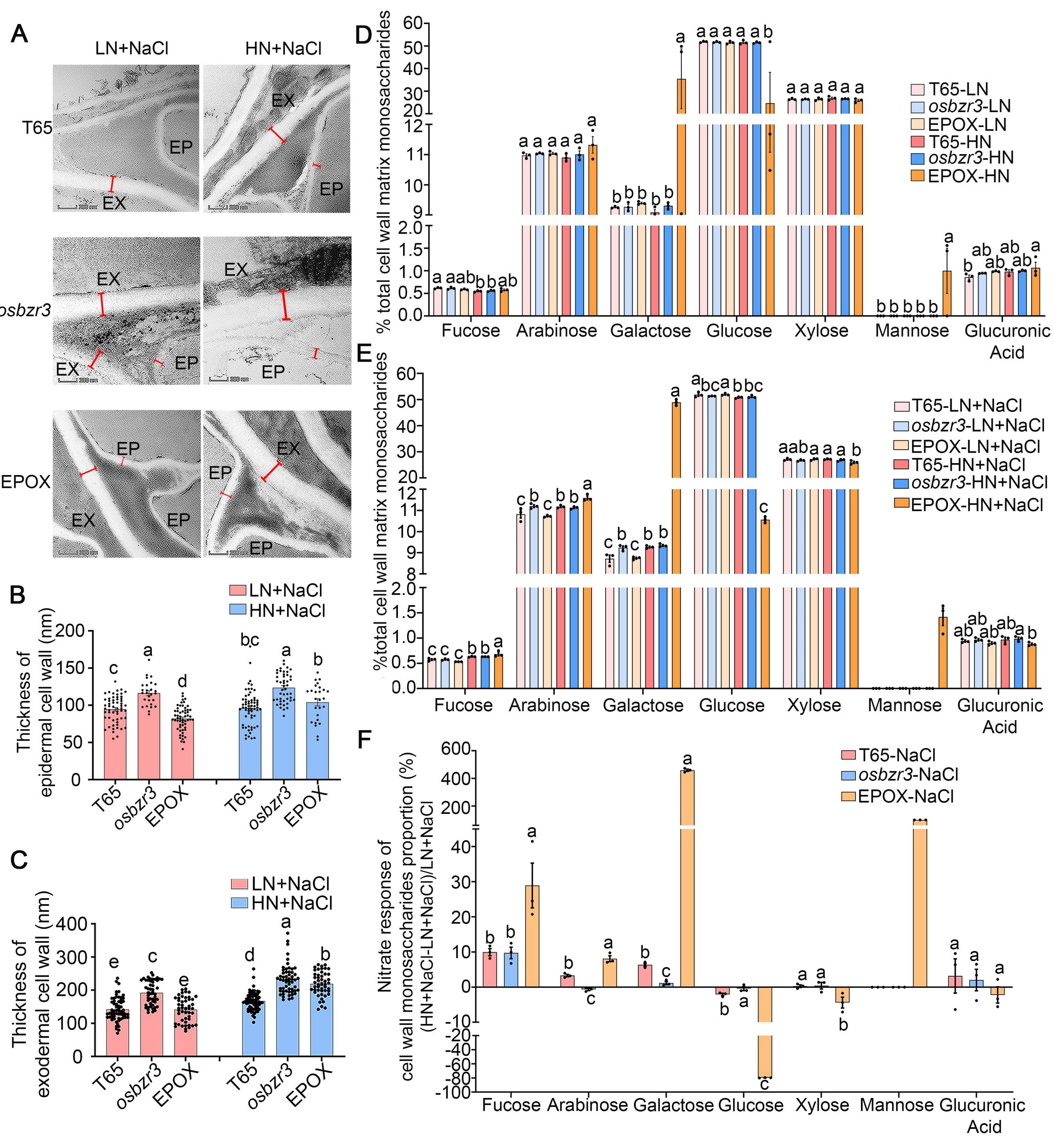 图2 OsBZR3增强了盐胁迫下KNO3介导的细胞壁修饰作用