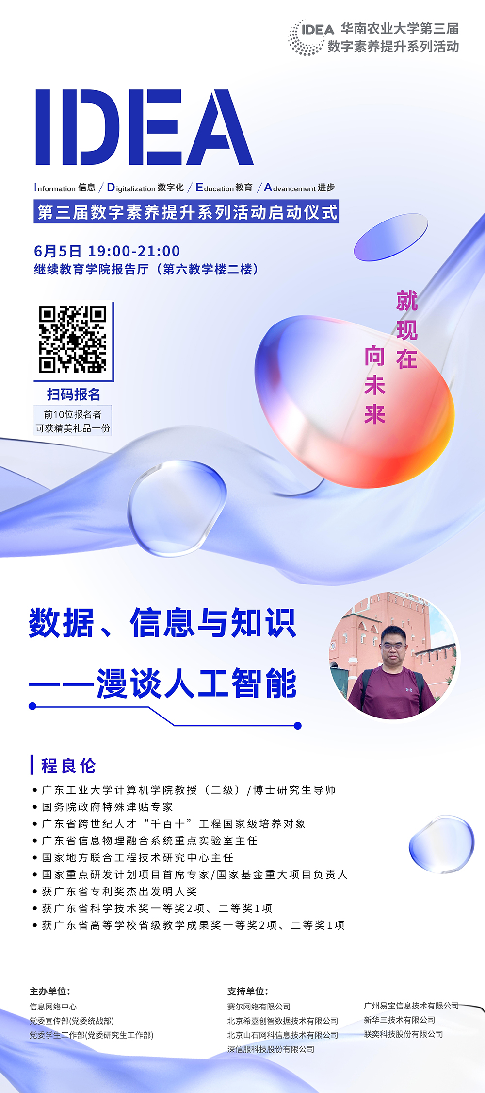 115周年校庆“学术华农”系列活动之0170:华南农业大学第三届数字素养提升系列活动启动仪式特邀报告《数据、信息与知识——漫谈人工智能》