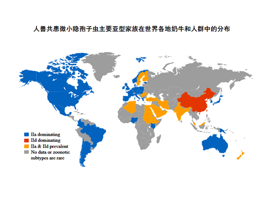 在新发人兽共患病原中,高致病性的微小隐孢子虫IIa亚型在发达国家的奶牛中广泛流行,并已成为重要的公共卫生问题。在我国,微小隐孢子虫目前仅在部分集约化养殖历史久的奶牛场流行,且流行的亚型(IId)与发达国家不同。为此,亟需基于全健康理念实施综合防控措施,以减缓我国本地 IId 亚型的扩散以及通过养殖废弃物对环境的污染,最终遏制微小隐孢子虫在我国人群和动物中的传播。此外,在发达国家流行的微小隐孢子虫IIa 亚型也已在我国少数放牧动物和人群中出现,提示该亚型可能正在我国逐步扩散,应尽快采取生物安全措施,加强监测,防止该亚型进入我国奶牛养殖场。因此,对于高致病力的微小隐孢子虫的防控,必须通过跨学科和跨部门的通力合作,才有可能减缓本地和外来亚型在我国人群中的传播。否则,随着集约化养殖的高速发展,我国很有可能会步发达国家的后尘,出现隐孢子虫病及其他动物源性人兽共患疾病的流行,从而引起重大公共卫生事件和经济损失。(文图/刘毅新)