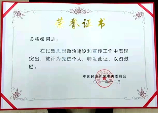 会议对在思想政治建设和宣传工作中取得突出成绩的组织和个人进行表彰。民盟华南农业大学委员会副主委、工程学院教授马瑞峻获“民盟思想政治建设和宣传工作先进个人”称号,广东省共有7位盟员获此殊荣。