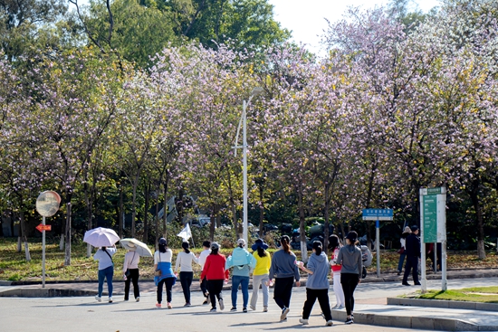 微风习习轻拂面,姹紫嫣红春意浓。活动过程中,老师们兴致盎然,三五成群,欢声笑语,行走在“五湖四海一片林”的紫荆校园,感受春天的气息,享受运动的快乐,展示巾帼的风采。最后在愉悦轻松的氛围下,参加健步行活动的教职工们顺利到达终点。