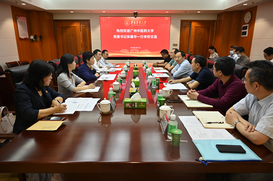 3月17日下午,广州中医药大学党委书记张建华一行来我校调研交流。校党委书记王斌伟接待来宾并在行政楼七楼中会议室进行座谈。校党委副书记邓国安参加了本次座谈。