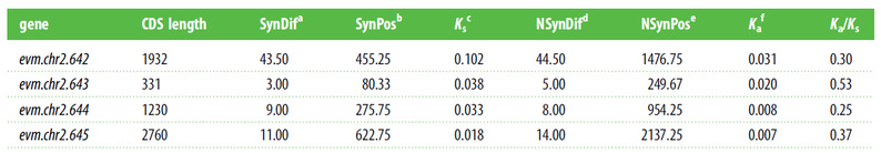 Table 2. Synonymous and non-synonymous divergence between the X- and Y-linked gametologs in the G. biloba non-recombining Y-specific region.
