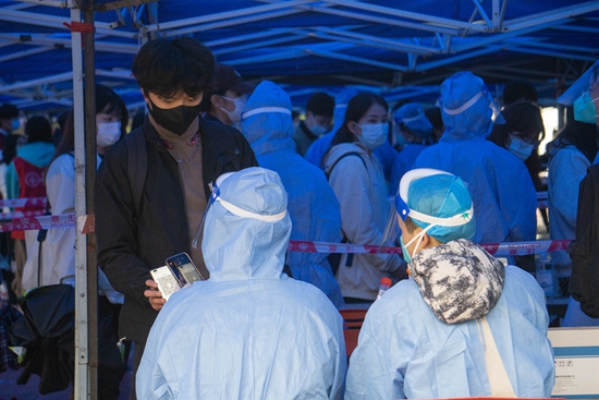 检测现场,医务人员身着白色防护服,佩戴好口罩、护目镜,有条不紊地对师生进行核酸采样;青年教工突击队队员闻令而动,发挥党员先锋模范用,彰显使命担当;学生志愿者迅速响应,负责扫码登记、现场引导,忙碌的身影勇敢而坚毅。各部门同心抗疫,校医院做好现场调度;学工部(研工部)组织动员学生志愿者;总务部为师生在现场、在饭堂准备好免费姜汤;校卫队员坚守岗位,维护现场秩序。全校上下一心,共同筑牢校园安全屏障。