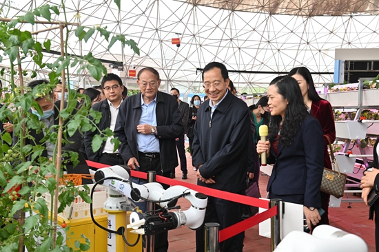 温光水环境智能管控、“机器人”自动巡园、机械手采摘蔬果、畜禽孵化智能调控、畜禽健康巡检机器人……这些智慧农业的“黑科技”场景,都能在华农一站式体验!4月19日上午,我校乡村振兴研究院首个“乡振小院”——智慧小院暨农业农村部华南热带智慧农业技术重点实验室示范园落成仪式在启林北实验基地举行。智慧小院一期建成了智能植物工厂和智能家禽工厂示范园,汇聚了智慧农业感知技术、算法模型、装备及农机与农艺高度融合的精准管控平台,打造华农先进智慧农业重点成果展示、试验及应用推广平台,为乡村振兴和农业产业转型升级提供科技与服务支撑。