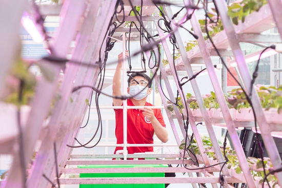 其中,智能植物工厂包括大棚主体、栽培设施及各种智能设备系统,分为感知设备区、算法模型区和作业装备区,可实现作物“耕种管收”全生命周期环节的“温光水土气”智能监测及作业指导调控;智能家禽工厂包括智能孵化出雏一体机、蛋胚及蛋品识别分选流水线及全智能养殖笼设施,可实现家禽的孵化、育雏、产蛋和养殖生产等环节的智能监管与精准饲喂调控。
